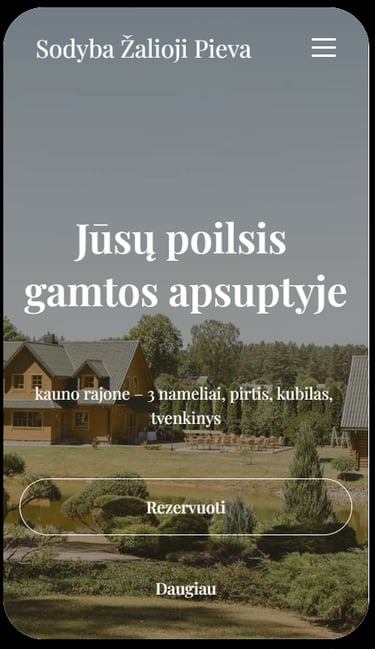 Projekto tikslas — pakeisti pasenusį sodybos puslapį modernia svetaine, kuri atspindi sodybos kokybę ir atmosferą. Įdiegėme rezervacijos formą, nuotraukų galeriją ir Google Maps integraciją, kad klientai galėtų lengvai rasti ir užsisakyti
