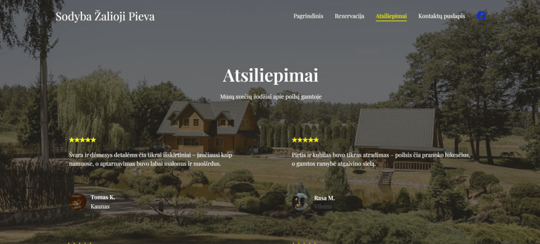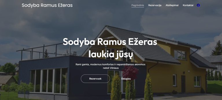Šiam projektui sukūrėme modernią, profesionalią svetainę su rezervacijos sistema, galerija ir atsiliepimų sekcija. Svetainė pilnai pritaikyta mobiliesiems įrenginiams ir padeda sodybos savininkams pritraukti daugiau klientų internetu.